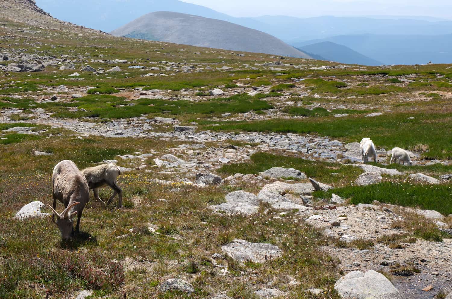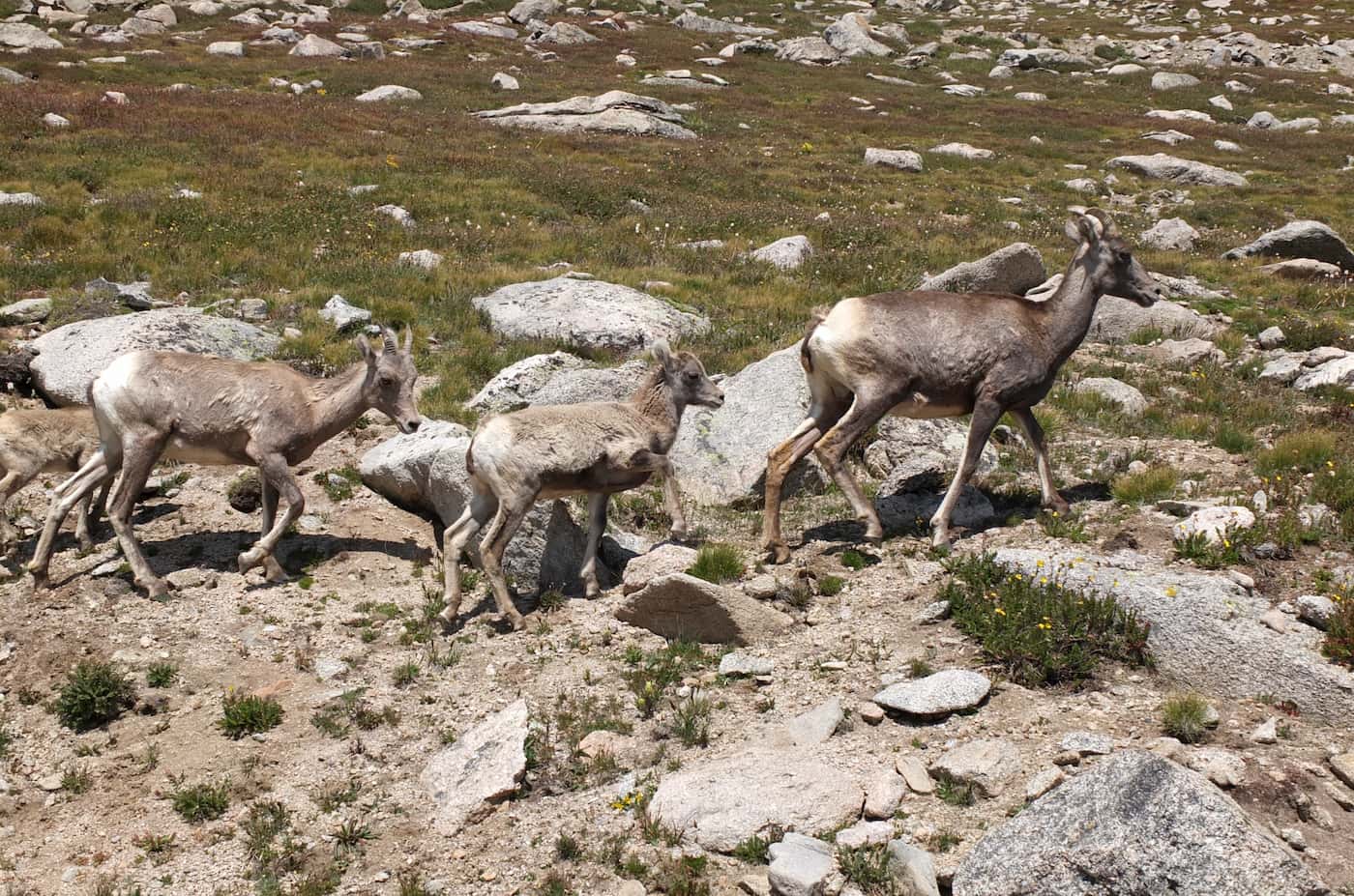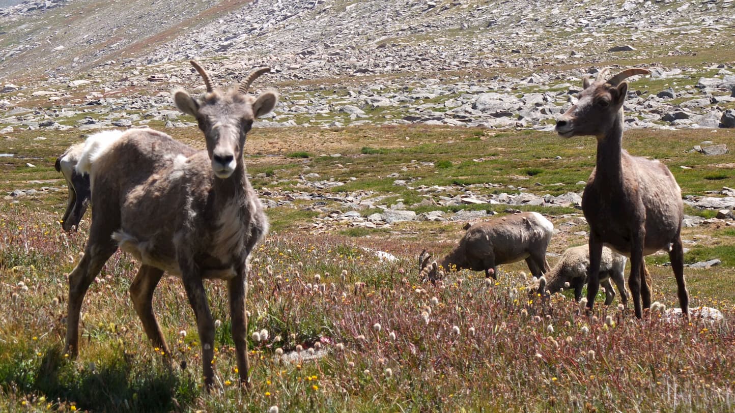Hembras de muflón con sus crías en el monte Evans, en el estado de Colorado.